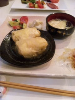 今日のランチはこれ。和風です。メインはロールキャベツ。