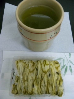 今日の夜のデザートはシフォンケーキのブルーベリー味。