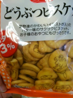 今日はクッキーにしました。懐かしい動物ビスケットです。