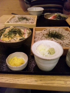 今日のお昼はそばでした。おそばとミニ木の葉丼。